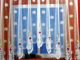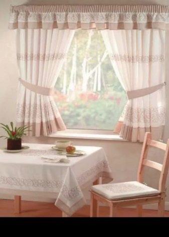 ستائر أقل شفافية مصنوعة من الشيفون والكامبريك. عادة لا تحتاج خيارات التصميم هذه إلى استكمالها. إذا كان لديك مطبخ خفيف أو صغير ، فلا تتردد في اختيار الستائر من الأقمشة المدرجة.