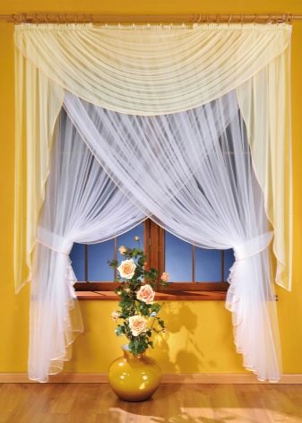 الستائر المصنوعة من التول والأورجانزا والفوال تسمح بدخول الضوء والهواء جيدًا. تتلاءم عضويًا مع الداخل. غالبًا ما يتم استكمالها بمصباح لامبريكين أو ستائر..