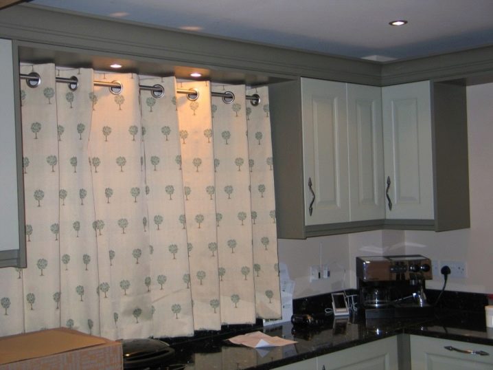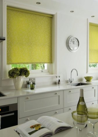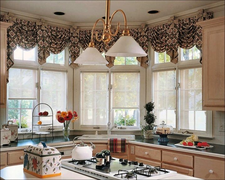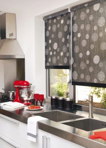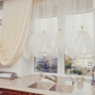 إذا كنت ترغب في إضافة لمسة من الفخامة ، انتبه إلى الستائر النمساوية. يتم لفهم في الأسفل على شكل أسقلوب. بهذا الشكل تغطي الستائر النوافذ جيدًا ، لكنها آمنة ولا تتداخل عند التحرك في المساحة المحدودة للمطبخ. عادة ما تكون مصنوعة من الأورجانزا ، وعند الانتهاء ، تبدو الستائر باهظة الثمن. إذا كانت الستائر النمساوية مصنوعة من قماش قطني ، فستبدو أبسط ، ولكنها ليست أقل أناقة..