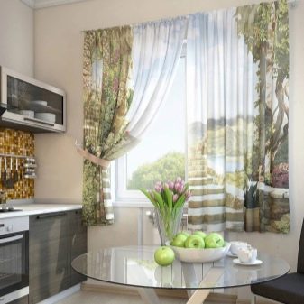 يمكن تقسيم المطبوعات على الأقمشة إلى عدة فئات: الزخارف الزهرية والطبيعية ، “القفص” ، الذي يرتبط دائمًا بالمطبخ والأنماط الحضرية. تبدو الستائر المركبة من قماشين أصلية جدًا: على سبيل المثال ، الجزء الرئيسي مصنوع من قماش مطبوع ، والقطعة الجانبية ، الموجودة عند تقاطع ستارتين ، مصنوعة من لون صلب مناسب.