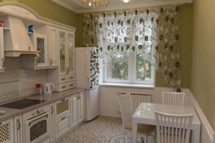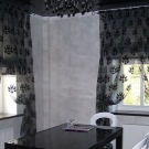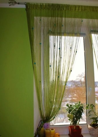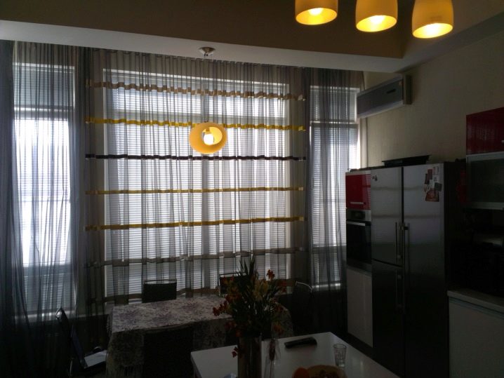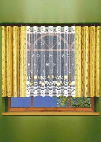 Kiseya – ستائر خفيفة ورقيقة مصنوعة من الخيوط. إنها تجعل المطبخ خفيفًا جدًا وخفيفًا في الفضاء. ومع ذلك ، يُنصح باستخدامها في تلك المطابخ حيث توجد الخزائن والموقد بعيدًا بما يكفي عن النافذة – لأسباب تتعلق بالسلامة. من المهم أن تكون ستائر الشاش أكثر زخرفية ، فلن تغلق من الشمس. عادة ما يتم استكمالها بستائر مثبتة مباشرة على الزجاج..