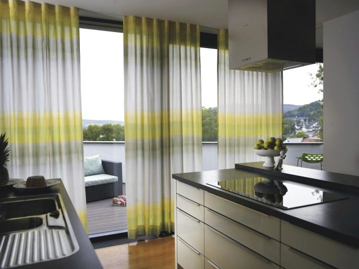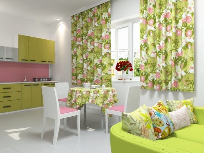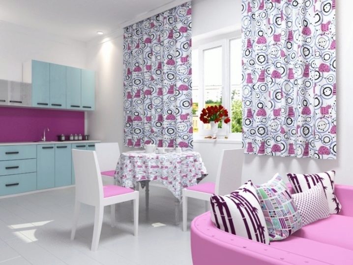 لجعل المطبخ يبدو مناسبًا ، سيتعين عليك العمل ليس فقط على اختيار الستائر. تحتاج إلى التفكير في المشروع بأكمله من البداية. في هذه الحالة ، تتناسب الستائر مع المفهوم العام للأسلوب أو نظام الألوان. يمكن دمجها ليس فقط مع مفرش المائدة أو الوسائد. يتم اختيار لهجة لونية معينة ، والتي تتكرر على الستائر ، وديكور الجدران ، والأرضيات ، وواجهات السقف والأثاث ، إلخ..