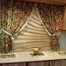 - استكمال الداخلية. الستائر هي التي يمكن أن تؤكد على أسلوب المطبخ: بروفانس ، البلد ، الحديث ، الرجعية ، إلخ..