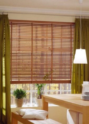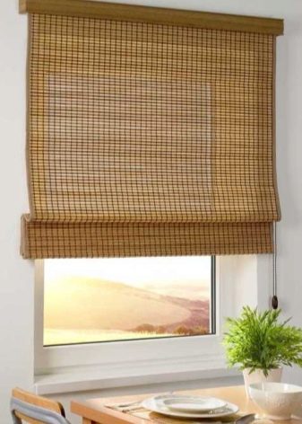 ستائر الخيزران هي في الأساس ستائر خشبية. نظرًا لقوام المواد الطبيعية ، فإنها لا تخلق إحساسًا بالمكتب ، وهي مثالية لمطبخ صغير مشرق. إنها تتناسب تمامًا مع الطراز الريفي ، والأسلوب البيئي ، وما إلى ذلك..