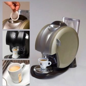 حصادات الاسبريسو. يمكنهم استخدام كل من البن المطحون والحبوب. في الواقع ، هذه آلة صنع القهوة ، في تصميمها قدمت الشركة المصنعة مطحنة قهوة مدمجة.