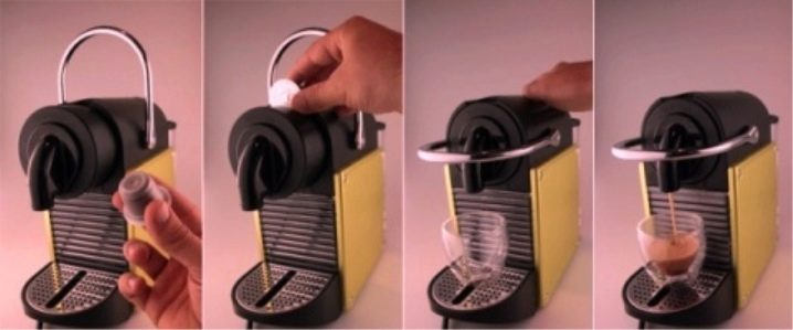 يشبه مبدأ تشغيل الجهاز الخروب ، ولكن الاختلاف هو أنه بدلاً من القهوة ، يتم شحن الجهاز بحبة قهوة خاصة – كبسولة قهوة بتركيبة مُعدة بالفعل وفقًا لوصفة خاصة لجزء واحد من مشروب ، كل منها في عبوة فردية.