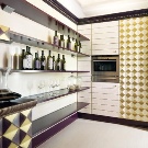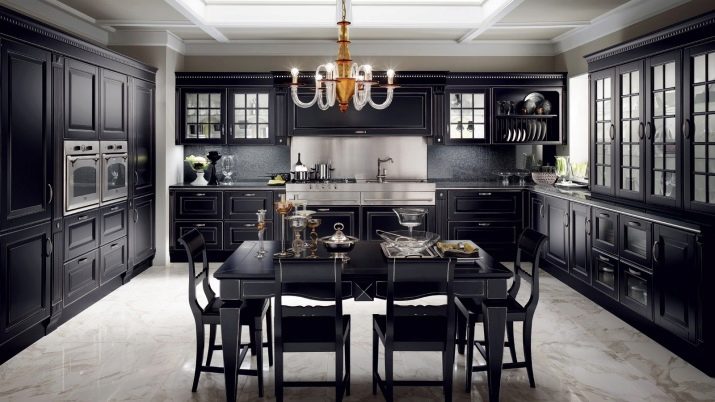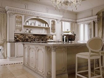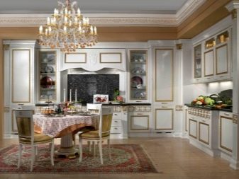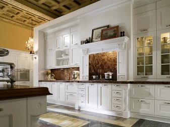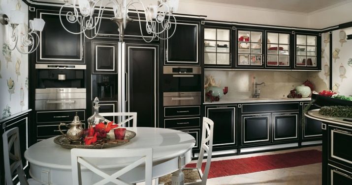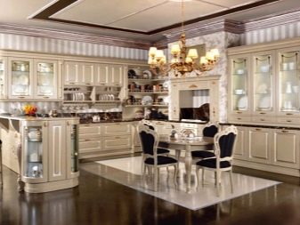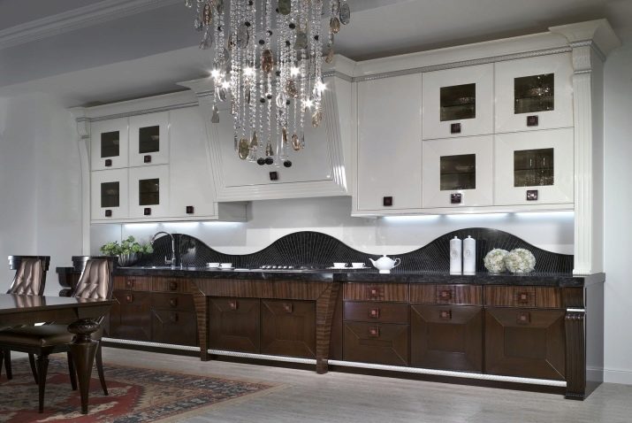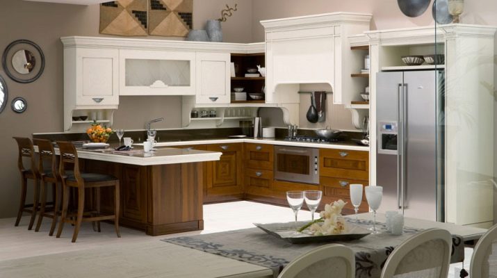 في هذه الحالة ، يعمل الطراز الكلاسيكي بشكل وثيق مع الحداثة ، مما يمنح المطبخ عناصر وظيفية ، والعديد من الأرفف والأدراج التي تسمح لك بتنظيم مساحة التخزين للأواني المختلفة بشكل جيد..