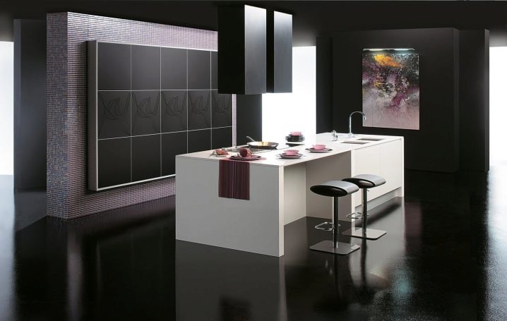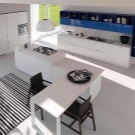يتميز اتجاه التكنولوجيا الفائقة بوجود مواد مثل الزجاج والبلاستيك والمعدن. تعتبر الظلال اللامعة الرائعة أيضًا سمة مميزة لمنطقة المطبخ بهذا النمط. هذا التصميم الداخلي مناسب تمامًا لرجال الأعمال الجادين الذين لا يحبون الألوان الزاهية وأنواع الرتوش الأخرى..