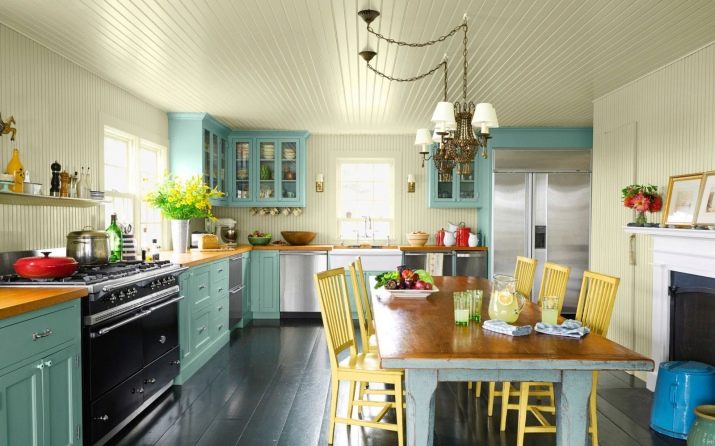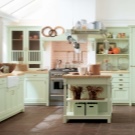 نمط ريفي – يمكن وضع مجموعة المطبخ المصممة بهذه الطريقة في شقة عادية في المدينة وفي الريف. هذه المفروشات ذات نوعية جيدة إلى حد ما وسعر معقول وسهلة الاستخدام..