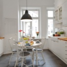 الطاولات والكراسي – عند اختيار طاولة ، عليك أن تأخذ في الاعتبار عدد أفراد الأسرة الذين سيجلسون عليها ، وكذلك التركيز على حجم الغرفة. بالنسبة للمطبخ الصغير ، يمكن أن يكون النموذج القابل للطي أو المنزلق خيارًا مثاليًا ، والذي ، على سبيل المثال ، يتكشف لتناول طعام الغداء بحيث يمكن لجميع أفراد الأسرة وضعه خلفه. ما تبقى من الوقت ، مثل هذا الجدول معقد ولا يشغل مساحة كبيرة.. في الشكل ، يمكن أن يكون: