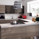 - المواد التي تصنع منها الوحدات. إما أنها ستكون عناصر داخلية خشبية بالكامل ، أو خيارًا اقتصاديًا أكثر: MDF أو لوح ألياف. هل سطح العمل مصنوع من البلاستيك أم الحجر الصناعي؟ في حالة وجود عناصر زجاجية أو معدنية?