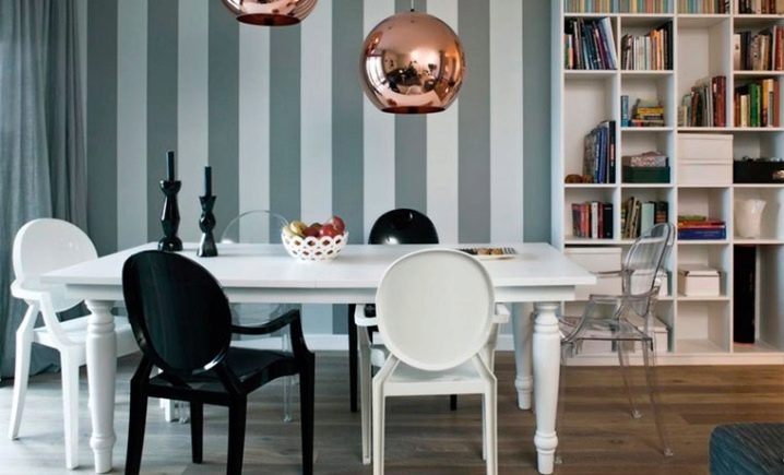 يمكن تصنيع الكراسي الشفافة بالكامل من البلاستيك وبالاقتران مع مواد أخرى ، بأشكال مختلفة. على سبيل المثال ، يمكن أن يكون ظهر الكرسي وأرجله مصنوعًا من الخشب أو المعدن. تضفي الأشكال القياسية والخطوط النظيفة تقشفًا على المطبخ. سيساعد استدارة التصميم في خلق بيئة ناعمة ودافئة ومريحة.. النماذج المستديرة أكثر أمانًا, ما هو المهم إذا كان هناك طفل صغير في المنزل.
