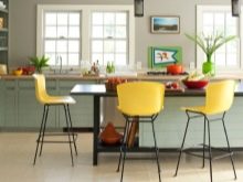 للتأكيد على أصالة مساحة المطبخ ، يمكنك شراء كراسي ذات شكل غير عادي أو نماذج مع حشو وتنجيد. تستخدم العلامات التجارية الجلود والمنسوجات الكثيفة كمواد تنجيد. يمكنك الحصول على أغطية قابلة للإزالة للهياكل البلاستيكية عن طريق الطلب على موقع الشركة المصنعة أو مورديها الرسميين ، أو عن طريق صنعها بنفسك في المنزل.