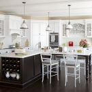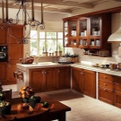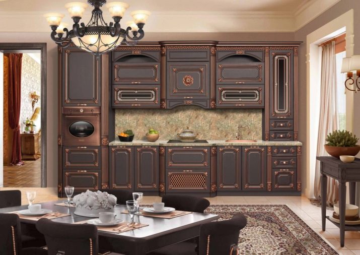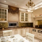 إذا كان الأثاث مصنوعًا بألوان فاتحة ، فيجب أن يتطابق الموقد وأدوات المطبخ الأخرى وأن يكونا في نفس النطاق. الأثاث الكلاسيكي الداكن مع ورق الحائط الفاتح يبدو أنيقًا للغاية. لا يعني الطراز الكلاسيكي دائمًا أثاث ينجي أو خشب البلوط المبيّض. يمكن أن يكون الكراميل أو الأزرق أو الأخضر الفاتح أو أرجواني. بالنسبة لأثاث المطبخ الخفيف ، غالبًا ما أستخدم الأبواب الزجاجية أو المرايا التي تؤكد على حجم أثاث المطبخ. ستكون خزانة جانبية ضخمة من خشب الجوز مع ترصيع بمثابة زخرفة حقيقية لمطبخ واسع.