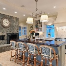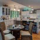 مجموعة من أثاث المطبخ تشمل طاولة طعام وكراسي أو براز وخزائن وواجهات للأجهزة المدمجة وألواح جدارية. بالإضافة إلى ذلك ، توجد أرائك أو طاولة بار أو خزانة جانبية أو خزانة ذات أدراج للأطباق وأماكن خاصة لتخزين النبيذ والتوابل والمنتجات السائبة.