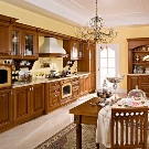 بالنسبة لهذا النمط ، يجدر اختيار نغمات ناعمة أو خطوط متدفقة أو نقوش أو زجاج ملون على الزجاج والتركيز على الأناقة. يمكن تمييز أثاث المطبخ ذو التصميم الكلاسيكي بالبساطة والأناقة ، أو على العكس من ذلك ، من خلال وفرة من التشطيبات والتذهيب. للحالة ، كقاعدة عامة ، يتم استخدام الخشب أو MDF. عند تصميم مساحة المطبخ ، من المهم للغاية اختيار لوحة ألوان واحدة..
