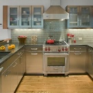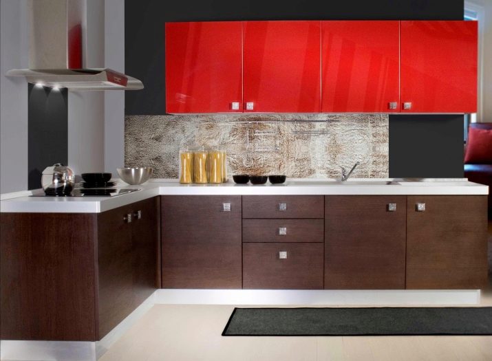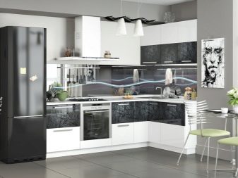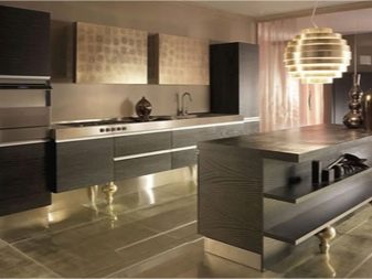 بفضل الموضة ذات التقنية العالية ، يمكنك العثور على أطقم مطبخ بمظهر من الألومنيوم وأسطح زجاجية. غالبًا ما توجد في هذا الإصدار من الأثاث والزجاج. يستخدم بشكل شائع في تصميم واجهات المطبخ والأرفف المزخرفة. يجب إيلاء اهتمام جاد للتركيبات وتجنب الخيارات الرخيصة. سوف يميز ويخلق حالة مزاجية لمجموعة المطبخ بأكملها. من الخيارات الجيدة مقابض مطلية بالكروم وأرجل قابلة للتعديل في الارتفاع وآليات خاصة تضمن الإغلاق السلس للأدراج.