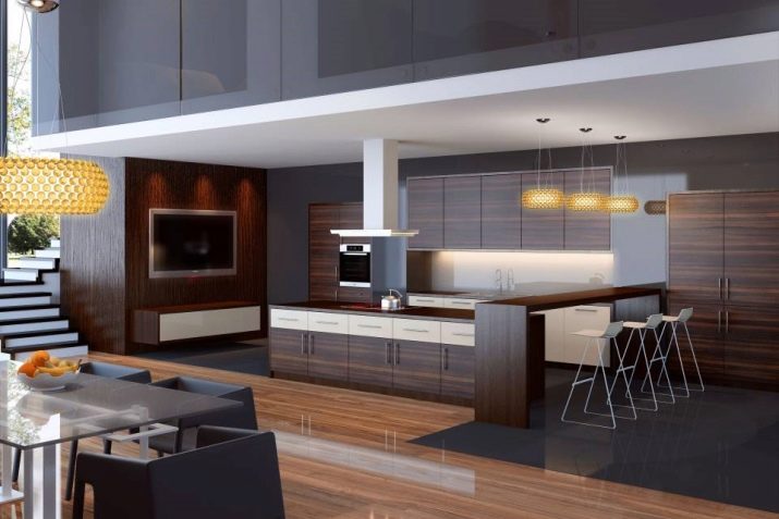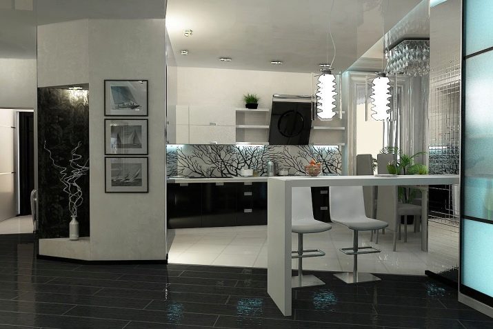 ستكمل التصميمات الداخلية الحديثة البسيطة طاولات زجاجية مع كراسي بلاستيكية شفافة. بالنسبة لاستوديو المطبخ ، سيكون عداد البار حلاً جيدًا ، مما سيساعد في تحديد المساحة ولن يشغل مساحة كبيرة. يشتمل المطبخ عالي التقنية على أثاث مصنوع من الزجاج والمعدن والبلاستيك. بالنسبة للمطبخ ، قد يبدو هذا النمط غير مريح وبارد للغاية. تأتي معظم أطقم المطبخ بواجهات منحنية ، والطاولة والكراسي مصنوعة من الزجاج والمعدن. إنه أمر رائع للأشخاص الذين يحبون العزيمة وأقصى مساحة خالية. بالنسبة للأثاث بهذا النمط ، فإن وجود عدادات البار ملازم ، ويمكن وضع منطقة تناول الطعام في منتصف المطبخ.