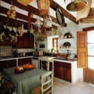ستكون الكراسي المصنوعة من الخيزران وأريكة صغيرة بمثابة عناصر إضافية. ألوان الأثاث في الغالب بني أو برتقالي أو رملي. في مثل هذا التصميم الداخلي ، تبدو حقائب الأقلام الضيقة والستائر الملونة ومفارش المائدة جيدة. إذا كان المالكون يريدون شيئًا غير عادي ووحدات أثاث المطبخ القياسية لا تناسبهم ، فيمكنك دائمًا الاتصال بمتجر الأثاث حيث سيساعدك المصممون في العثور على أفضل الحلول..