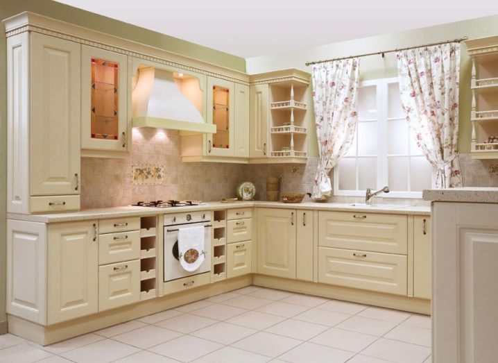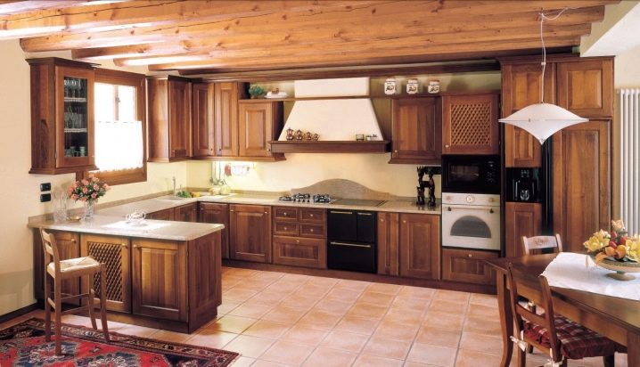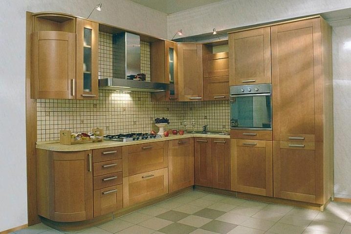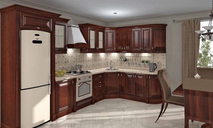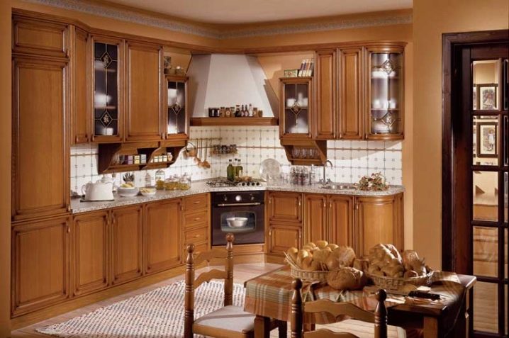 غالبًا ما يكون أثاث المطبخ الركن الكلاسيكي مصنوعًا من الخشب الصلب أو MDF الذي يقلد الخشب بجودة عالية. يمكن إنشاء خيار الميزانية فقط من MDF ، مغطى بالمينا أو الفيلم.
