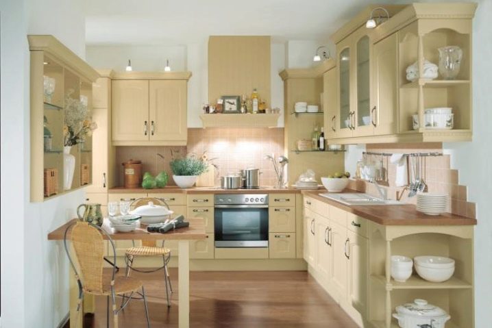 يمكنك إنشاء تصميم مطبخ فردي بشكل مستقل ، مع مراعاة الأذواق وتفضيلاتك الخاصة والطراز الرئيسي للغرفة.