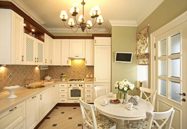 بالنسبة للمطابخ الصغيرة التي تحتوي على مجموعة ركنية ، يعتبر البيج الكلاسيكي والقشدة والقشدة والشمبانيا والأبيض ألوانًا مثالية. تعتبر الألوان الداكنة مثالية للغرفة الفسيحة ، ولكنها لا تزال تخلق بصريًا مظهر المساحة المزدحمة.. تحتوي الألوان الكلاسيكية الداكنة على عدد كبير من الظلال – من الأسود إلى البني الفاتح..