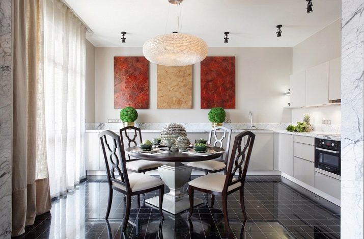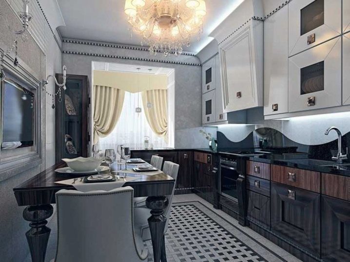 يحتوي هذا النمط على مجموعة متنوعة من الألوان: من الرمل والبيج إلى العنابي وحتى الأسود. أسلوب "الفن ديكو" سيحول حتى أكثر المأكولات العادية وغير الموصوفة. سوف تتألق الغرفة بألوان جديدة ، وتصبح راقية وفاخرة.
