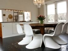 - بلاستيك هي أحدث مادة لأثاث المطبخ. خفيف الوزن ومتين ، يمكن أن يأخذ أي شكل في يد سيده ، وألوانه الزاهية ستحيي مساحة المطبخ. الكراسي البلاستيكية متواضعة في الصيانة ، ولن يكون من الصعب تنظيفها من الشحوم والبقع. يمكن للبلاستيك تقليد الزجاج بسهولة ، وستضيف المنتجات الشفافة انعدام الوزن والتهوية إلى داخل مطبخ صغير.