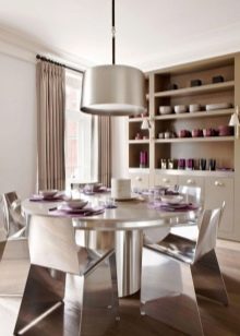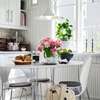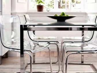 في الآونة الأخيرة ، كانت مجموعات المطبخ على الموضة ، والتي لا تشمل فقط جدار الأثاث ، ولكن أيضًا منضدة مع مجموعة من المقاعد لتتناسب مع سماعة الرأس. لقد تغير الزمن ، والموضة الحالية لا تتطلب مطابقة تصميم الكراسي مع الخزائن فوق الموقد ، وغالبًا ما يتم طلب سماعة الرأس مدمجة ، ويتم شراء الطاولة والكراسي الخاصة بها بشكل منفصل.