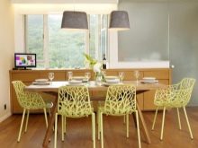 اختيار الكراسي مناسب لأن تصميمها لا يتطلب إشارة خاصة إلى داخل الغرفة. يمكن أن تكمل أسلوبًا معينًا وتؤكد عليه ، أو أن تكون لهجة أزياء مستقلة أو بقعة لونية. ومع ذلك ، لا يزال من الضروري السعي لتحقيق الانسجام في الأساليب وعدم السماح بالذوق السيئ الفاضح. على سبيل المثال ، ليس من الضروري استكمال الأثاث الخشبي بأسلوب كلاسيكي بكراسي نصف بلاستيكية متعددة الألوان من مقهى صيفي – سيكون هذا غير مناسب.