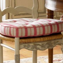 إذا بدا لشخص ما أن هذه الكراسي غير مريحة ، فيمكن حل هذه المشكلة بمساعدة الوسائد الزخرفية المزينة بزخارف نباتية. لن توفر هذه الإضافة الراحة فحسب ، بل ستخلق أيضًا جوًا لطيفًا متأصلًا في المدن الجنوبية لفرنسا..