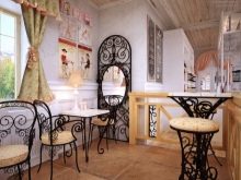 إذا لم يتم تصميم المباني السكنية في أسلوب بروفانس ، ولكن ، على سبيل المثال ، المؤسسات العامة ، يجب أن يستوفي الأثاث نفس المعايير. يجب أن يكون كرسي البار أنيقًا ومريحًا قدر الإمكان. ليست هناك حاجة إلى مستجدات الموضة الزائدة والبراقة. يوجد أثاث كروم في السوق الحديث ، والذي يباع تحت ستار بروفانس ، لكنه يبدو من الناحية المرئية أشبه بالحديث أو عالي التقنية.