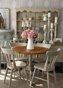 تتحد كراسي غرفة المعيشة بالتطور بدون أبهة لا داعي لها. يجب أن تكون القطع الجميلة والمتواضعة منسجمة مع بساطة منزل بروفانس. من الأفضل عدم تشبع الغرفة بتفاصيل صغيرة – بعض الكراسي الموضوعة على الطاولة ستجعل غرفة المعيشة مريحة بشكل خاص..