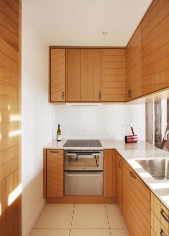 ليس كل أثاث المطبخ مناسبًا لغرفة صغيرة. لن يترك الحجم الضخم والمتضخم أي مساحة خالية. في مثل هذه الحالات ، يعد أثاث الزاوية خيارًا رائعًا لغرفة صغيرة. يشغل مساحة أقل بكثير ، مما يترك مساحة خالية. يتم توحيد جميع أثاث الزاوية لمنطقة المطبخ الصغيرة بعامل واحد – فهي تستخدم وظيفيًا كل ملليمتر في غرفة صغيرة.
