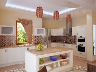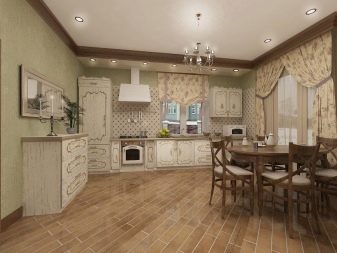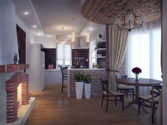 إمكانيات تطوير التصميم غير محدودة. يمكنك استخدام المطبخ الموجود وتحويله في المنزل الريفي إلى مطبخ استوديو. يمكنك استخدام غرف مجاورة إضافية – أقرب غرفة ، غرف تخزين. سوف يساعدون في توسيع المنطقة وتركيب الأثاث والأجهزة المنزلية اللازمة..