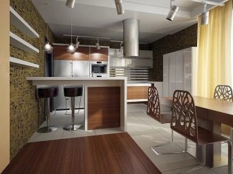 لا يتم استبعاد ورق الحائط.في استوديو المطبخ في منزل خاص ، ستبدو أي مساحة داخلية جميلة ومشرقة معها ، إذا تم اختيار ورق الحائط بشكل صحيح وذوق. تقدم الشركات المصنعة ورق حائط قابل للغسل وورق حائط يمكن رسمه. بالطبع ، يجب أن تتطابق استوديوهات المطبخ مع نظام الألوان والنمط..