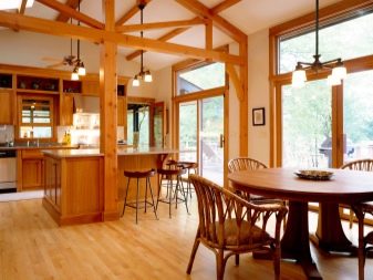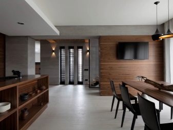 وغني عن القول ، أفضل مواد التشطيب طبيعية؟ إذا سمحت الأموال ، يمكنك استخدام أفضل وأعلى جودة منها. تشمل أفكار الموضة هياكل خشبية لمطبخ الاستوديو. أرضية خشبية جيدة وألواح جدارية من الخشب الطبيعي وطاولة طعام من خشب الزان أو البلوط عالي الجودة.