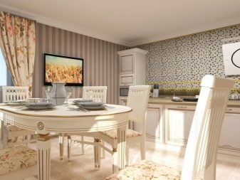 يبدو ، ولكن أين ستكون منطقة تناول الطعام؟ تم تخصيص المكان الأكثر راحة وراحة – بالقرب من النافذة. اشرب الشاي وانظر من النافذة إلى الأوراق المتساقطة أو المساحات الخضراء المزهرة ، والتي يمكن أن تكون أفضل?