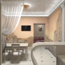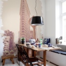 أثناء التشغيل ، اتضح أن اللوحة الجدارية هي الحل الأمثل للغرفة ، فهي تحتوي على عدد من الخصائص المهمة. على سبيل المثال ، الطلاء بدرجات لونية فاتحة يرفع السقف بصريًا ، وتخلق الزخرفة الزخرفية حدًا بين منطقة العمل ومكانًا للراحة والغداء والفطور وما إلى ذلك..