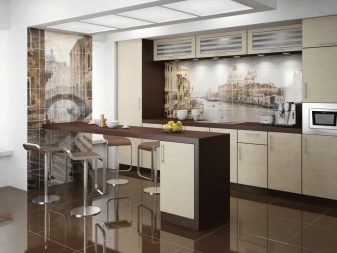 أيا كان النمط الداخلي الذي تختاره للمطبخ ، يجب أن تفكر بعناية في اختيار اللوحة الجدارية والصورة الموجودة عليها. يجب أن تأخذ الصورة نفسها في الاعتبار خصائص الغرفة. إذا كنا نتحدث عن الاتجاه الحديث أو الانصهار السائد اليوم ، يمكنك استخدام المنتجات مع صورة خريطة العالم. بالنسبة إلى الدور العلوي والصناعي والأنيق الحضري ، من الأفضل اختيار المؤامرات الحضرية والطوب المقلد وصور فن البوب والمطبوعات المواضيعية غير العادية من عصور مختلفة.