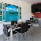 سيتم توسيع أبعاد المطبخ بصريًا بمساعدة رسم بمناظر طبيعية جميلة وخطوط أفق مرئية وساحل البحر.