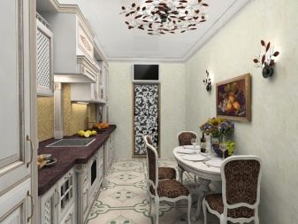 بالنسبة لبعض الاتجاهات الأسلوبية لتصميم المطبخ ، ستكون الإطارات الأكثر ملاءمة هي الأشكال المعقدة. هذه هي جميع أنواع الإطارات ، مزينة بضفائر وإدخالات ضخمة أو ديكور على شكل أحجار الراين أو الأحجار. الأهم من ذلك كله ، أن تعقيد النموذج يناسب التصميم الكلاسيكي أو مزيج من “الكلاسيكيات” مع “الحديث” ، والذي يتضمن ، على سبيل المثال ، أسلوب “آرت ديكو”.