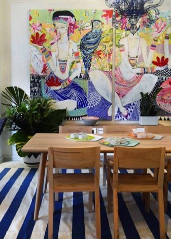 هناك أفراد تبدو لهم كل هذه اللوحات ، حتى لو كانت عائلية ، حتى لو كانت فرش الفنانين المشهورين ، لسبب ما ، مبتذلة و “حماقة” نوعًا ما. بالنسبة لهم ، يمكنك أن تنصحهم بشيء من الفن الحديث – يمكن أن تكون ، على سبيل المثال ، صورًا تجريدية تتناسب مع داخل المطبخ بأسلوبها وألوانها. عادة ما تبدو مثل هذه اللوحات كنمط هندسي ، أو نوع من الزخرفة الطنانة ، أو انفجار للألوان وما شابه..