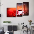 لا يكفي اختيار الموضوع والتصميم المناسبين لكل لوحة من اللوحات التي اخترتها لمطبخك – بل يجب أيضًا أن تكون قادرًا على ترتيب كل لوحة في مكانها. يُعتقد أنه من الأفضل أن تأخذ اللوحات مكانًا أمام سماعة الرأس أو تزين منطقة تناول الطعام بهذه الطريقة. يجب أيضًا مراعاة أنه من الأفضل تعليق الصورة الكبيرة بشكل منفصل ، وبمساعدة الصغار ، حاول إنشاء نوع من التكوين العام..