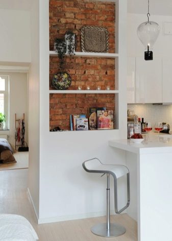 إذا سمحت المساحة وإمكانيات الخيال والمحفظة ، يمكنك تجهيز مكانة كعنصر من عناصر الديكور في الشقة. لهذا ، يتم تحديد الموقع المركزي للغرفة. يجب أن تكون مضاءة جيدًا ، من المستحسن ألا يتداخل الهيكل المستقبلي مع منطقة مطبخ العمل ، ولا يمنع الاقتراب من الموقد أو الحوض. باستخدام مواد مختلفة ، يتم إنشاء خلفية متخصصة عامة ، يمكن أن يكون لها إضاءة زخرفية.
