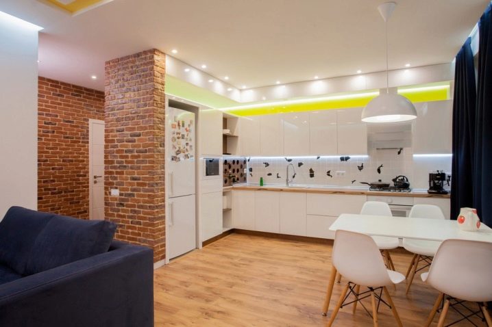لا يجب أن يكون مكانه مربعًا أو مستطيلًا. خيال المصمم قادر على إلهام الهياكل البيضاوية ، نصف دائرية ، مزينة ببلاط الفسيفساء ، والخشب الطبيعي ، مع مصابيح مثبتة بالداخل. القرارات الأكثر جرأة هي تركيب مدفأة صناعية في مكانة المطبخ. إنه فعال للغاية ، لكنه يتطلب مكانًا معينًا في المطبخ. هذه هي الميزة الرئيسية – أنت بحاجة إلى مساحة لتنفيذ خططك..