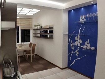 وإذا كنت تحلم بوجود بار في مكانه المناسب ، فيمكنك تجهيز العطلة بأبواب مزخرفة. للمساعدة – صندوق جبس ، يمكنك من خلاله بناء شريط رائع بجانبه. ومن خلال استكمالها بأرفف زخرفية مصنوعة من أنواع مختلفة من المعدن أو الزجاج الشفاف أو الملون ، يمكنك الحصول على أرفف جميلة ستقف عليها النظارات.