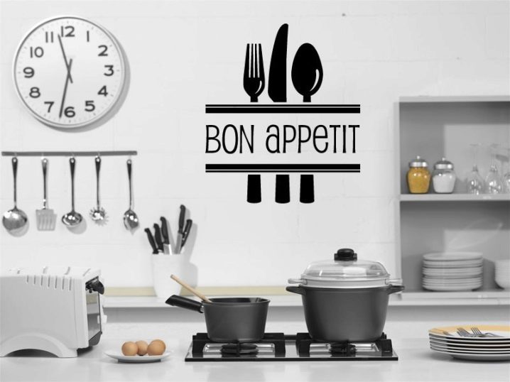 الموضوع المفضل للعديد من ملصقات المطبخ هو الحروف. يمكن أن تكون باللغتين الروسية ولغات أخرى. رغبات شهية طيبة ، إعلان الحب لمنزلك ومطبخك ، أو حتى قواعد السلوك الهزلية في الثلاجة – كل هذا يمكن تطبيقه على ملصق ، ثم على الجدران: