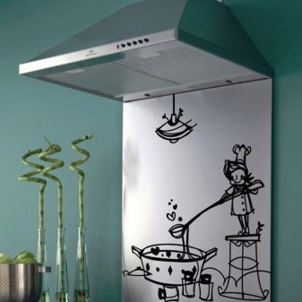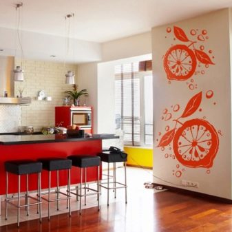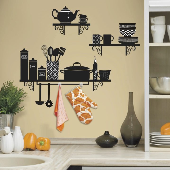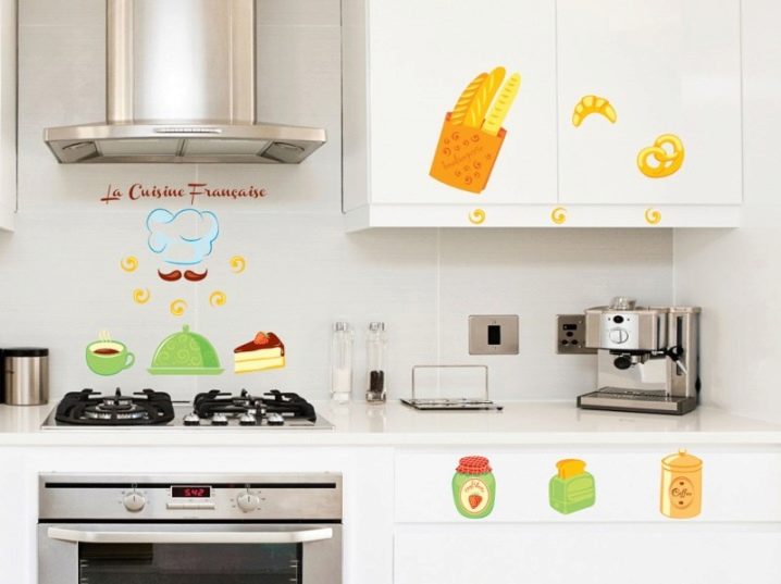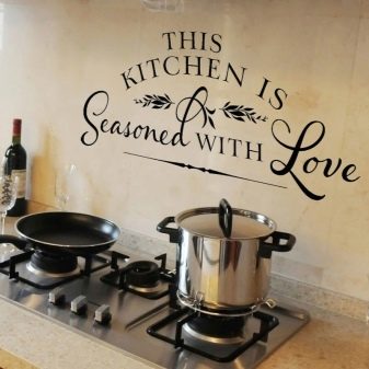 تعتبر الملصقات مثالية إذا كان الجزء الداخلي من المطبخ بسيطًا ولكنه مشرق. إنها تتناسب تمامًا مع أسلوب فن البوب: لهذا السبب يتم استخدامها في كثير من الأحيان لتزيين مقاهي الشباب والفنادق الصغيرة وما إلى ذلك. ومع ذلك ، ينتج المصنعون اليوم مجموعة كبيرة من الملصقات التي يمكن استخدامها في المطبخ بأي أسلوب على الإطلاق..