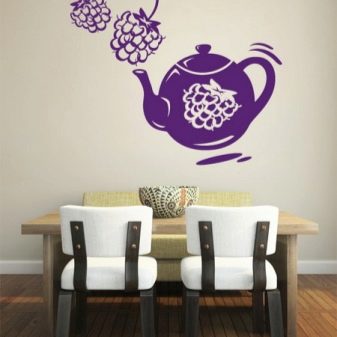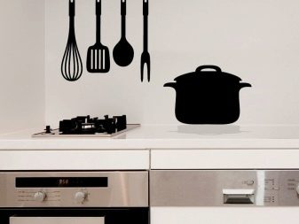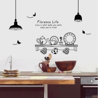 تعتبر الملصقات مثالية إذا كان الجزء الداخلي من المطبخ بسيطًا ولكنه مشرق. إنها تتناسب تمامًا مع أسلوب فن البوب: لهذا السبب يتم استخدامها في كثير من الأحيان لتزيين مقاهي الشباب والفنادق الصغيرة وما إلى ذلك. ومع ذلك ، ينتج المصنعون اليوم مجموعة كبيرة من الملصقات التي يمكن استخدامها في المطبخ بأي أسلوب على الإطلاق..